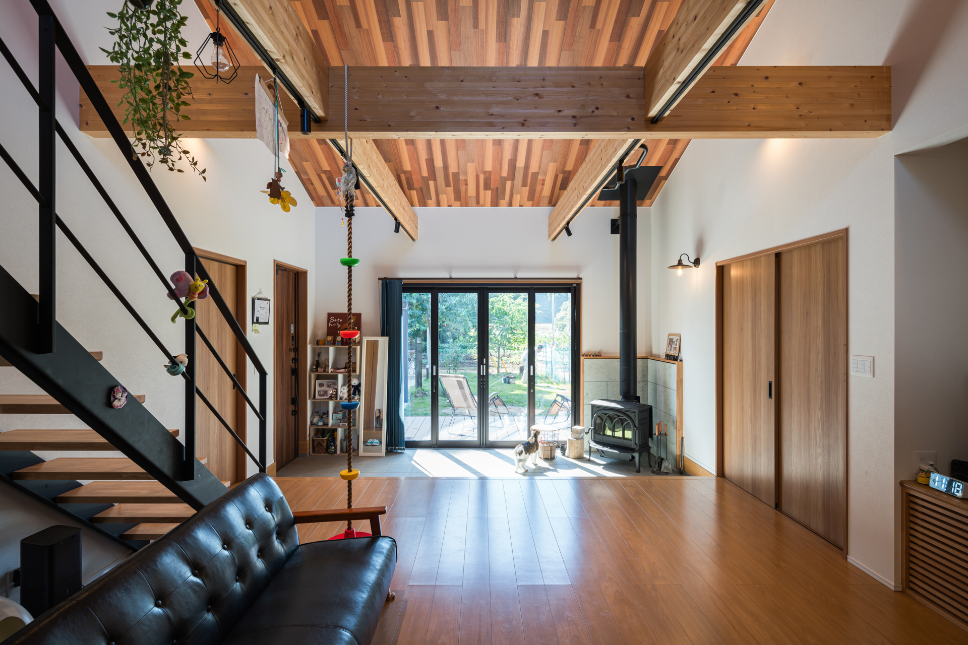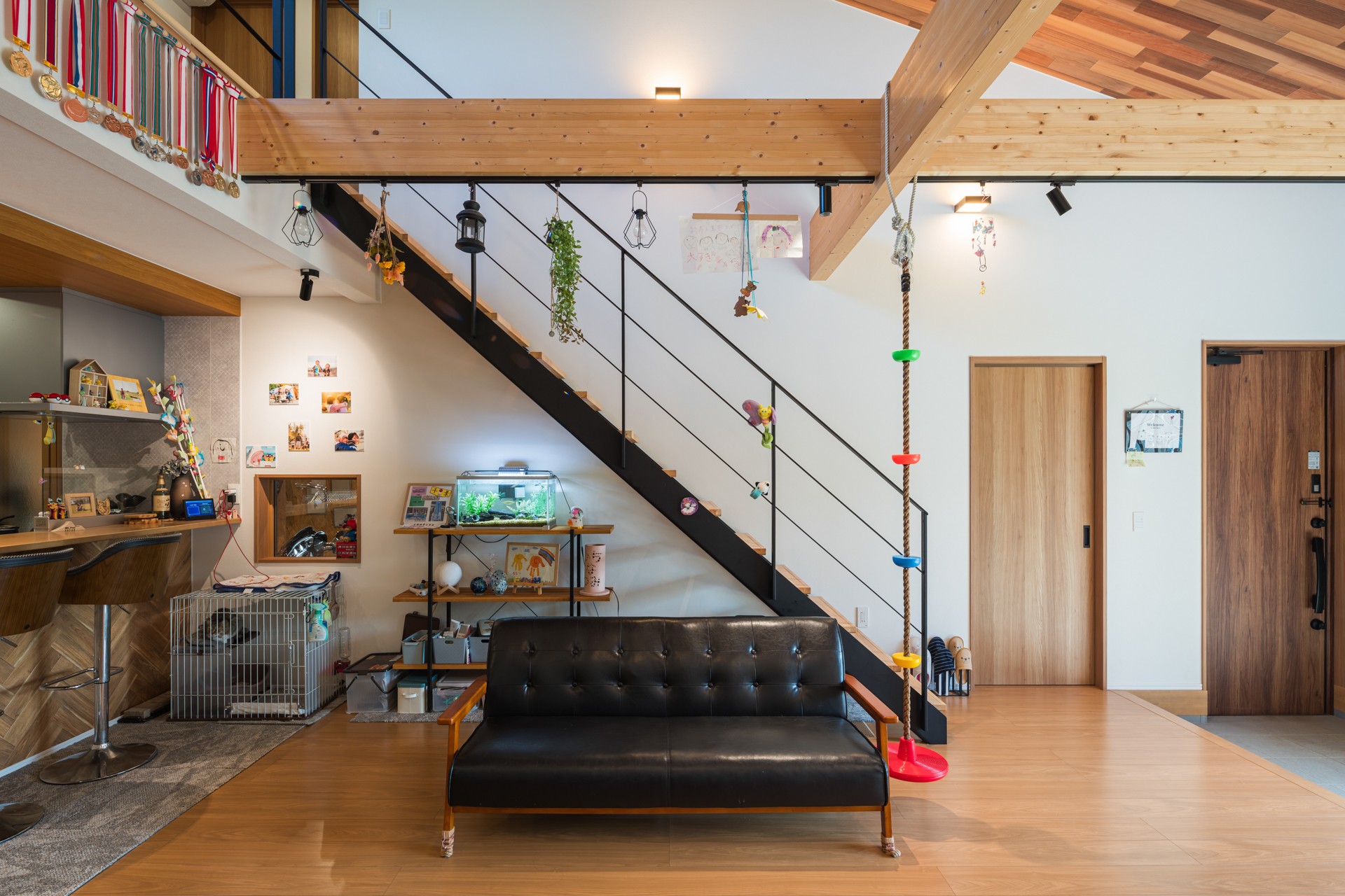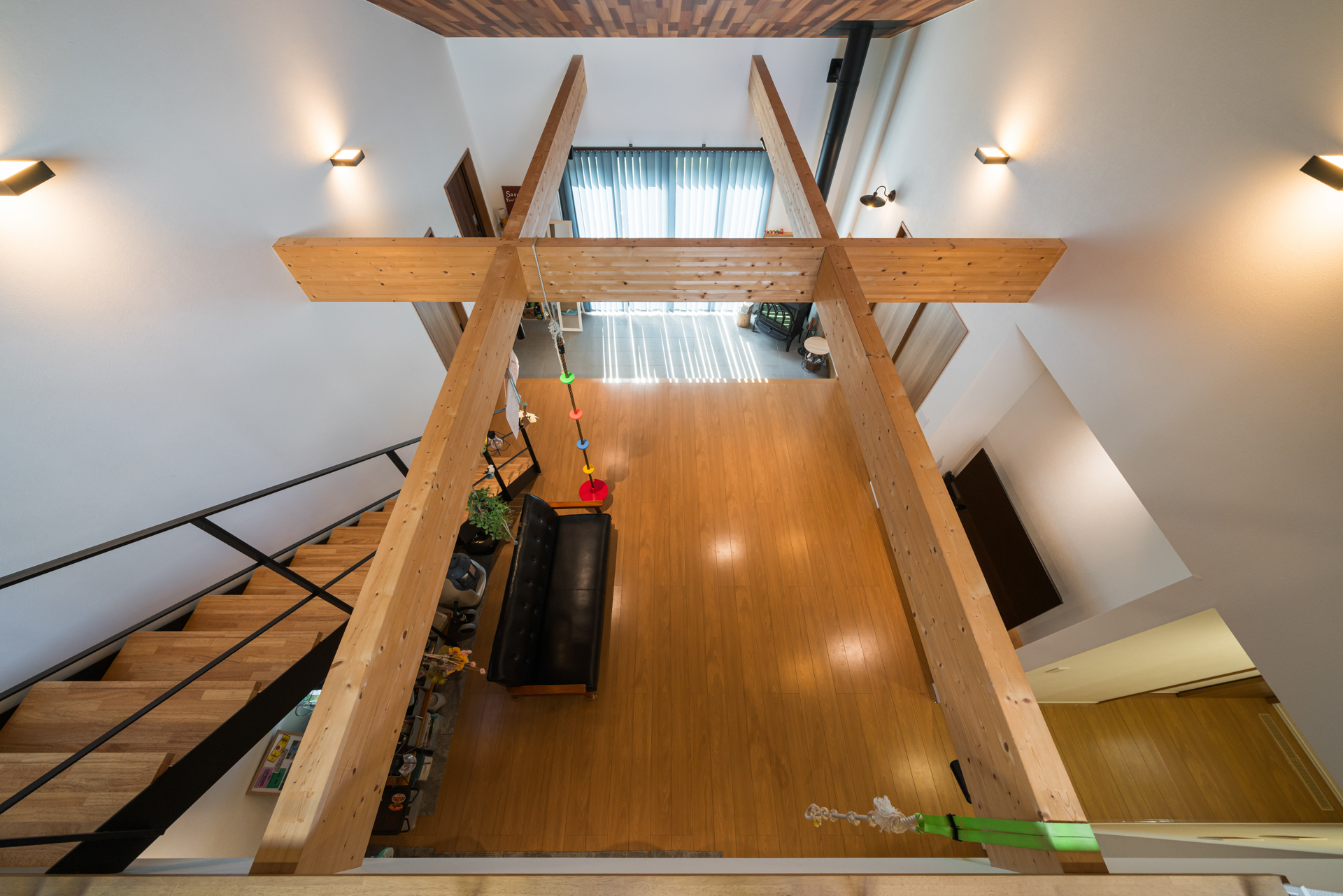 梁の使い方は色々。登り綱を垂らして子供の遊び場にも。